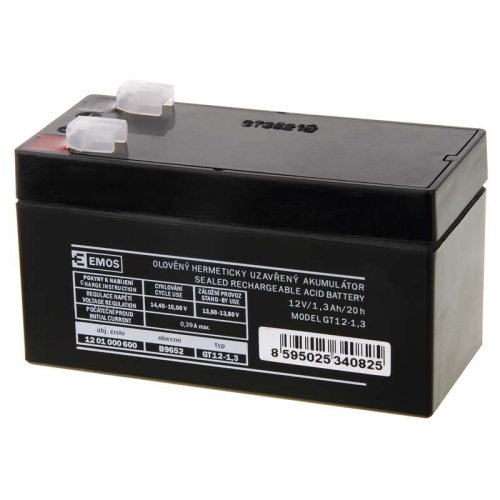 bezúdržbový ano chemické složení Pb napětí 12 V kapacita 1,3 Ah hmotnost 0,5 kg terminál faston 4,7 mm optimální životnost 5 let rozměr 97 × 45 × 53 mm prodejní obal 1 ks EZS (elektronické zabezpečovací systémy) ano EPS (elektronické požární systémy) ano UPS (záložní zdroje) ne zahradní traktory ne nabíjecí svítilny ne dětská vozítka - např. Peg-Pérego ne nouzové osvětlení ne