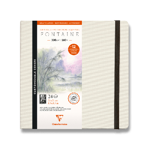 Akvarelové album Clairefontaine Fontaine Hot Pressed - s pohledy, 21 x 21 cm, 24 listů, 300 g