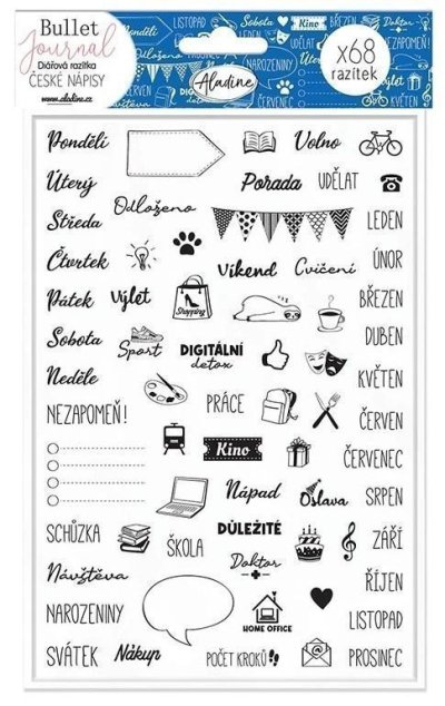 Sada originálních razítek k výrobě rodinného kalendáře nebo k dotvoření vlastního diáře. Celoroční témata aktivit celé rodiny s českými texty se dají využít i na zábavné plánování s malými dětmi, budují slovní zásobu na téma rodina. Lze je využít i na celou řadu společných tvořivých aktivit. Sada obsahuje 68 ks razítek. Rozměr archu je 13,2 x 19,2 cm.