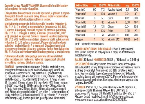 ALAVIS™ MAXIMA Liposomální multivitaminy je komplexní formule v kapslích.