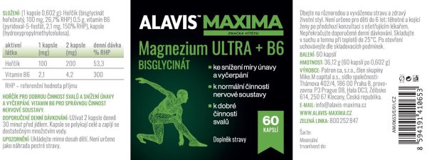 Doplněk stravy ALAVIS™ MAXIMA Magnezium ULTRA + B6 přináší hořčík ve formě bisglycinátu hořečnatého obohacený o vitamín B6 (pyridoxin). Tyto dvě složky působí synergicky a přináší rychlou pomoc při dysbalanci organismu.