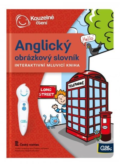 UPOZORNĚNÍ: Tato kniha funguje pouze s elektronickou tužkou ALBI (není součástí balení). Interaktivní anglický obrázkový slovník z edice Kouzelné čtení pro začátečníky a mírně pokročilé. Zábavnou formou si vytvoříte nebo rozšíříte slovní zásobu a naučíte se správně vyslovovat anglická slovíčka a jednoduché věty. Slovník je rozdělen do jedenácti tématických kapitol, které obsahují přes tisíc anglických slovíček včetně obrázků a příkladů použití. Slovník je doplněn kompletním českým překladem. Pomůcka při výuce angličtiny pro děti od 4 let. Kouzelné čtení je unikátní výukový systém, který vám přináší spoustu informací a zábavy. Stačí, když se lehce dotknete elektronickou tužkou obrázku nebo textu, ozve se příslušná informace, zvuk nebo hudba. Kouzelné čtení je určeno dětem v předškolním věku, tak dětem starším, ale bezpochyby zaujme i dospělé. Díky speciální technologii mohou knihy plně využívat i děti v předškolním věku, které ještě číst neumí. Samy si tak mohou „přečíst“ pohádku nebo se hravou formou naučit poznávat barvy, čísla, písmena či nejrůznější tvary. Výhody Kouzelného čtení ALBI: