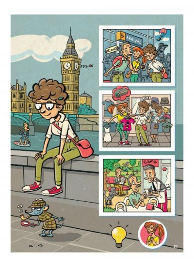 Kniha má 9 kapitol, každá z nich je rozdělena do 4 částí (příběh-poslech, slovíčka, fráze, příběh - četba). V jednotlivých kapitolách se naučíte, jak se domluvit například na letišti, v restauraci, jak se orientovat ve městě nebo co vás může potkat v přírodě při stanování či na pláži. Kniha obsahuje přes 11 000 zvukových stop.