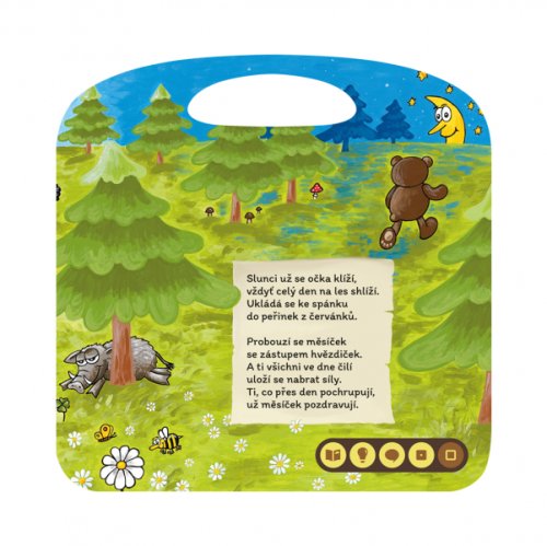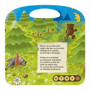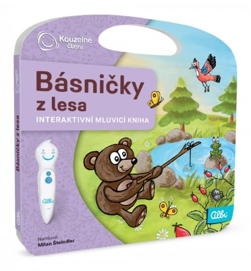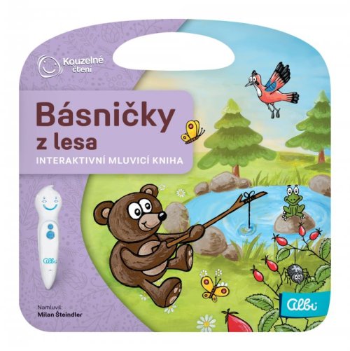UPOZORNĚNÍ: Básničky z lesa fungují pouze s elektronickou tužkou ALBI (není součástí balení). Pokračování úspěšného prvního dílu z edice Kouzelné čtení! Interaktivní kniha Básničky z lesa obsahuje 12 básniček o zvířátkách z lesa, monology zvířátek i jejich příběh. V knize nechybí zábavný kvíz, ve kterém budou děti hledat jednotlivá zvířátka, rostliny a další. Kniha obsahuje přes 500 zvuků a textů. Knihu Kouzelné čtení Zpívánky 2 namluvila Andrea Elsnerová a ilustrovala Iveta Autratová. Nazpíval Studiový dětský sbor. Doporučeno pro děti ve věku 3 - 7 let. NECHTE KNIHY MLUVIT! Kouzelné čtení je unikátní výukový systém, který vám přináší spoustu informací a zábavy. Stačí, když se lehce dotknete elektronickou tužkou obrázku nebo textu, ozve se příslušná informace, zvuk nebo hudba. Kouzelné čtení je určeno dětem v předškolním věku, tak dětem starším, ale bezpochyby zaujme i dospělé. Díky speciální technologii mohou knihy plně využívat i děti v předškolním věku, které ještě číst neumí. Samy si tak mohou „přečíst“ pohádku nebo se hravou formou naučit poznávat barvy, čísla, písmena či nejrůznější tvary. Výhody Kouzelného čtení ALBI:
