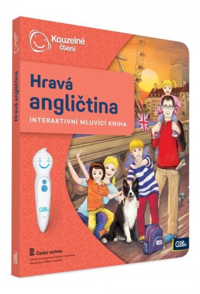 UPOZORNĚNÍ: Tato kniha funguje pouze s elektronickou tužkou ALBI (není součástí balení). Interaktivní učebnice angličtiny. Zábavnou formou si vytvoříte nebo rozšíříte slovní zásobu a naučíte se správně vyslovovat anglická slovíčka a jednoduché věty. Kniha je namluvena rodilými mluvčími, ale obsahuje také kompletní český překlad. Získané znalosti si můžete otestovat v kvízech, které jsou rozděleny do tří kategorií dle obtížnosti. Kniha obsahuje přes 2200 zvuků a textů. Kouzelné čtení je unikátní výukový systém, který vám přináší spoustu informací a zábavy. Stačí, když se lehce dotknete elektronickou tužkou obrázku nebo textu, ozve se příslušná informace, zvuk nebo hudba. Kouzelné čtení je určeno dětem v předškolním věku, tak dětem starším, ale bezpochyby zaujme i dospělé. Díky speciální technologii mohou knihy plně využívat i děti v předškolním věku, které ještě číst neumí. Samy si tak mohou „přečíst“ pohádku nebo se hravou formou naučit poznávat barvy, čísla, písmena či nejrůznější tvary. Kouzelné čtení - ilustrační video
