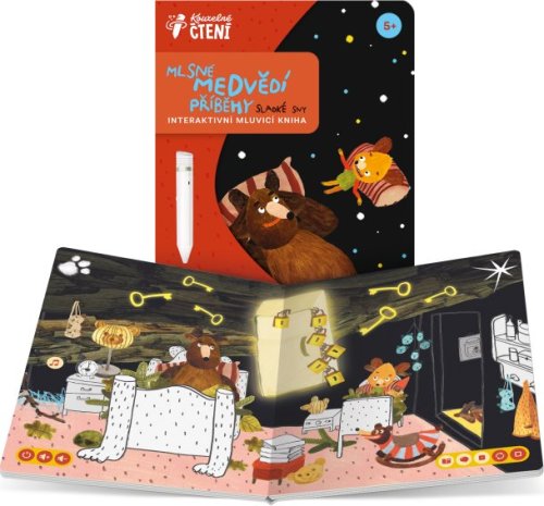 UPOZORNĚNÍ: Kniha funguje pouze s elektronickou tužkou ALBI (není součástí balení). Miškovi a Nedvědovi se nechce spát. Ve snu ale zažijí nevídaná dobrodružství a potkají spoustu kamarádů. Nebude ono to spaní nakonec zábavné? Mluvicí pohádková knížka ze světa Mlsných medvědích příběhů pomůže dětem od 5 let navyknout si na rituály před usnutím a těšit se do postýlek. Kromě originálního příběhu obsahuje tato knížka z edice Kouzelné čtení vtipné medvědí průpovídky , písničky a také užitečné tipy ohledně všeho, co se týká spaní. Spánek totiž není nuda! Kniha obsahuje přes 1 000 zvukových stop . Namluvili: David Novotný, Lukáš Příkazký Výtvarné řešení: Filip Pošivač Úprava ilustrací: Kateřina Karhánková Text: Kateřina Karhánková a Tomáš Končinský Hudba: Prokop Holoubek Kniha vznikla ve spolupráci se studiem C-FLAT. ISBN 978-80-7688-202-7 NECHTE KNIHY MLUVIT! Kouzelné čtení je unikátní výukový systém, který vám přináší spoustu informací a zábavy. Stačí, když se lehce dotknete elektronickou tužkou obrázku nebo textu, ozve se příslušná informace, zvuk nebo hudba. Kouzelné čtení je určeno dětem v předškolním věku, tak dětem starším, ale bezpochyby zaujme i dospělé. Díky speciální technologii mohou knihy plně využívat i děti v předškolním věku, které ještě číst neumí. Samy si tak mohou „přečíst“ pohádku nebo se hravou formou naučit poznávat barvy, čísla, písmena či nejrůznější tvary. Výhody Kouzelného čtení ALBI: