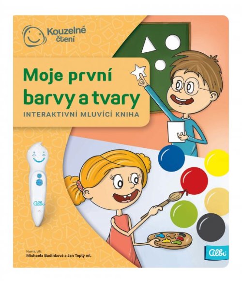 UPOZORNĚNÍ: Tato kniha funguje pouze s elektronickou tužkou ALBI (není součástí balení). Interaktivní mluvící kniha Moje první barvy a tvary z edice Kouzelné čtení provede děti od 3 let světem kolem nás a ukáže jim, jak již název napovídá, všemožné barvy a tvary. Průvodci se stanou sourozenci Sára a Tom a poví dětem například jaká barva vznikne smícháním červené a modré, jaký tvar má včelí plástev a co je silueta. Kniha je plná dialogů a zvuků, které děti zaujmou. Nechybí ani oblíbené zábavné kvízy ve 3 úrovních obtížnosti. Kniha Moje první barvy a tvary obsahuje přes 2100 zvuků a textů. Je namluvena Michaelou Badinkovou a Janem Teplým ml. Kouzelné čtení je unikátní výukový systém, který vám přináší spoustu informací a zábavy. Stačí, když se lehce dotknete elektronickou tužkou obrázku nebo textu, ozve se příslušná informace, zvuk nebo hudba. Kouzelné čtení je určeno dětem v předškolním věku, tak dětem starším, ale bezpochyby zaujme i dospělé. Díky speciální technologii mohou knihy plně využívat i děti v předškolním věku, které ještě číst neumí. Samy si tak mohou „přečíst“ pohádku nebo se hravou formou naučit poznávat barvy, čísla, písmena či nejrůznější tvary. Kouzelné čtení - ilustrační video