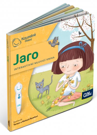 UPOZORNĚNÍ: Kniha Jaro funguje pouze s elektronickou tužkou ALBI (není součástí balení). Minikniha Jaro z edice Kouzelné čtení je určena nejmenším dětem. Seznámí je s naším nejvoňavějším ročním obdobím. Kniha dětem od 2 let ukáže, čím vším se mohou na jaře bavit. Madlenka s Jonášem už se nemůžou dočkat, až vyrazí na výlet nebo do parku. Ukážou vám i to, jak se připravují na Velikonoce. Zvládne Jonáš uplést pomlázku a Madlenka nabarvit vajíčka? A jak si užívají jaro kočka Míca a pejsek Blek? Knížka obsahuje přes 350 zvukových stop . Namluvili Tereza a Matouš Rumlovi. Vhodné pro děti od 2 let. NECHTE KNIHY MLUVIT! Kouzelné čtení je unikátní výukový systém, který vám přináší spoustu informací a zábavy. Stačí, když se lehce dotknete elektronickou tužkou obrázku nebo textu, ozve se příslušná informace, zvuk nebo hudba. Kouzelné čtení je určeno dětem v předškolním věku, tak dětem starším, ale bezpochyby zaujme i dospělé. Díky speciální technologii mohou knihy plně využívat i děti v předškolním věku, které ještě číst neumí. Samy si tak mohou „přečíst“ pohádku nebo se hravou formou naučit poznávat barvy, čísla, písmena či nejrůznější tvary. Výhody Kouzelného čtení ALBI: