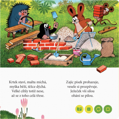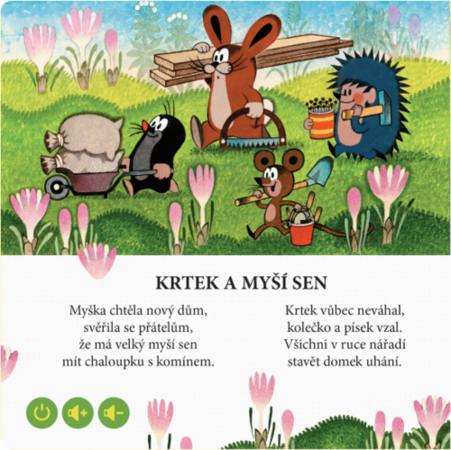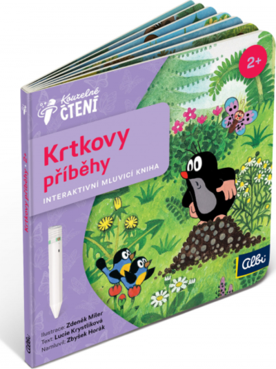 UPOZORNĚNÍ: Kniha Krtkovy příběhy funguje pouze s elektronickou tužkou ALBI (není součástí balení). Interaktivní mluvicí minikniha Krtkovy příběhy z edice Kouzelné čtení s ilustracemi Zdeňka Milera pro nejmenší děti od 2 let. Kdo by neznal malého neposedu krtka! Nádherné ilustrace Zdeňka Milera zavedou děti za krtkem a jeho kamarády. Nejprve krtek pomůže se stavbou nového domku, který si vysnila myška, potom zachrání ztraceného zajíce a nakonec se vydá na výlet, kde ho překvapí medvědi. Krtek je zkrátka kamarád, se kterým rozhodně není nuda. Minikniha Krtkovy příběhy obsahuje přes 300 zvukových stop. Vzniklo ve spolupráci se studiem SoundLab. Knihu namluvil Zbyšek Horák. NECHTE KNIHY MLUVIT! Kouzelné čtení je unikátní výukový systém, který vám přináší spoustu informací a zábavy. Stačí, když se lehce dotknete elektronickou tužkou obrázku nebo textu, ozve se příslušná informace, zvuk nebo hudba. Kouzelné čtení je určeno dětem v předškolním věku, tak dětem starším, ale bezpochyby zaujme i dospělé. Díky speciální technologii mohou knihy plně využívat i děti v předškolním věku, které ještě číst neumí. Samy si tak mohou „přečíst“ pohádku nebo se hravou formou naučit poznávat barvy, čísla, písmena či nejrůznější tvary. Výhody Kouzelného čtení ALBI: