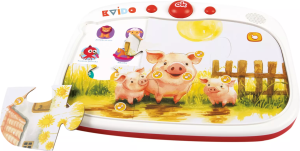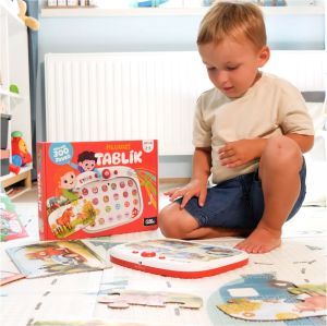 Děti mohou samy poslouchat více než 300 zvuků zvířátek, přírody, dopravy, pohádek, písniček, říkanek a mnoho dalšího. Navíc si složí puzzle s různým počtem dílků, poslechnou si ozvučené části obrázků a vyzkouší si zábavné kvízy. Složené puzzle či kartu stačí pouze položit přes ikony do tablíku. Aktivity s Mluvicím tablíkem podporují komunikaci, rozvoj smyslového vnímání, poznávání, paměti a jemné motoriky. Pokud si chcete rozšířit svou sbírku o nová témata, další puzzle a karty lze zakoupit samostatně. Pro provoz jsou třeba 3ks baterie typu AAA (nejsou součástí balení). Balení obsahuje: dotykovou tabulku – Mluvicí tablík, 2 oboustranné puzzle (4 motivy s dopravními prostředky a zvířátky z farmy s ozvučenými obrázky a kvízy), 2 oboustranné ozvučené karty (4 obrázky s motivy dětského hřiště, pískoviště a české pohádky O Koblížkovi se zvuky a kvízy), adaptér na stahování dalších zvukových souborů.