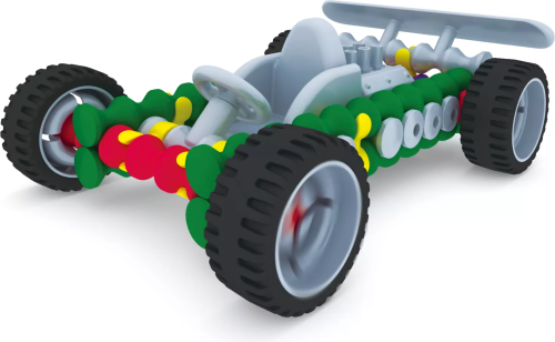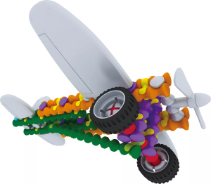 Ze stavebnice Playstix si můžete snadno postavit více než 24 různorodých modelů, např. domeček, zvířátko, letadlo nebo různé druhy vozidel s pevnými kolečky.
