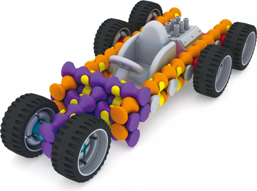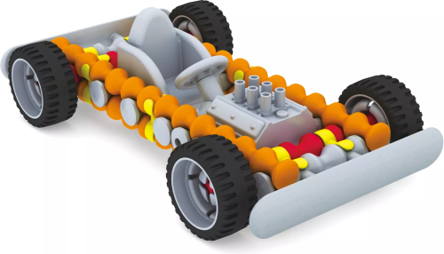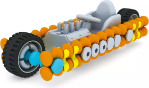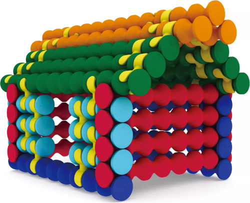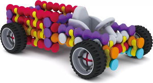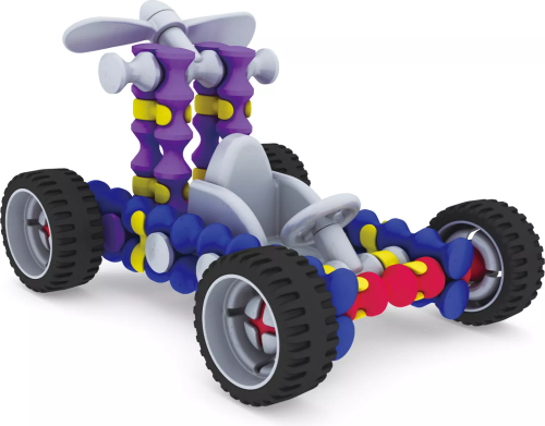 Ze stavebnice Playstix si můžete snadno postavit více než 20 různorodých modelů, např. domeček, pyramidu nebo různé druhy vozidel s pevnými kolečky.