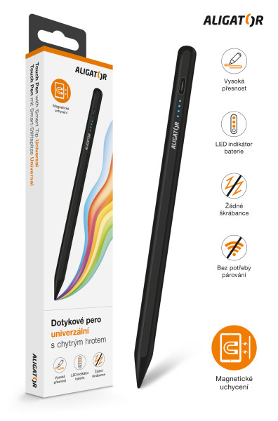 Klíčové vlastnosti: *kompatibilní se systémem Android, iOS, iPadOS a Windows *chytrý hrot *vysoká přesnost dotyku s nulovou odezvou zpoždění *skryté magnetické uchycení - možnost přicvaknutí na kovovou základnu zařízení *funguje bez potřeby párování s tabletem či jiným zařízením *LED indikátor baterie *žádné škrábance *až 4 hodiny provozu na 1 nabití (nabíjení cca 40 minut) *USB-C konektor *náhradní hrot a nabíjecí kabel v balení