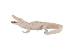 Latinský název: Alligator mississippiensis (albínní forma). Velikost: běžně dorůstá délky až 4–5 metrů a hmotnosti přes 200 kg. Výskyt: jihovýchodní USA – státy jako Florida, Louisiana, Alabama, Mississippi. Zbarvení: jedná se o vzácnou barevnou odchylku (albinismus nebo leucismus). Albíni mají zcela bílé tělo a růžové oči. Leucističtí jedinci jsou bílí, ale mají tmavé oči. Biotop: bažiny, řeky, jezera a mokřady. Potrava: masožravec – ryby, želvy, ptáci, savci. Chování: stejně jako běžní aligátoři – většinu času tráví ve vodě, rádi se vyhřívají na slunci. Vzácnost: bílých aligátorů je na světě jen velmi málo – odhaduje se méně než 100 jedinců. Význam: kvůli své jedinečnosti jsou často chováni v zoologických zahradách a rezervacích, kde přitahují velkou pozornost.