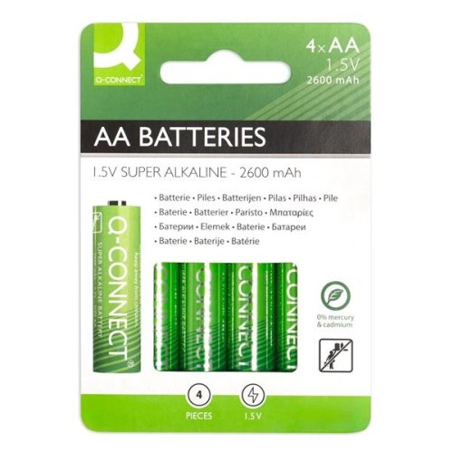 Kvalitní alkalické baterie s dlouhou životností Značka Q-Connect Typ AA (tužková, LR6) Napětí 1,5 V Balení 4 ks