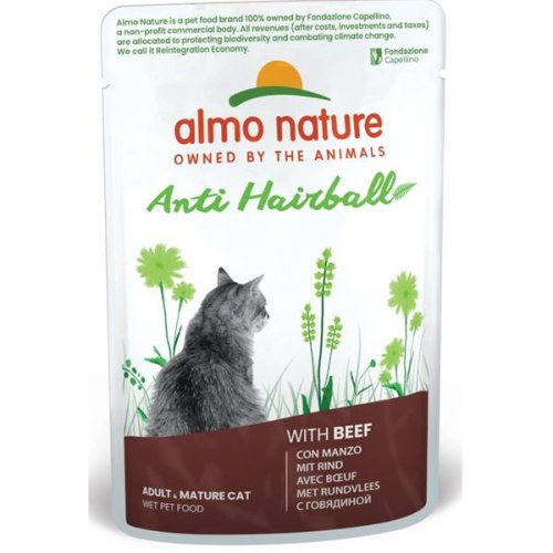 Antihairball je funkční vlhké krmivo pro dospělé kočky s rostlinnou vlákninou, která má preventivní účinek proti vzniku bezoárů ve střevech a usnadňuje jejich průchod trávicím traktem.