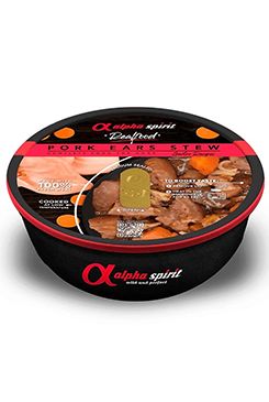 Dušené pomalým vařením 100% čerstvé vepřové ucho v omáčce s hráškem, mrkví a sladkými bramborami, vařené při nízkých teplotách, vakuované do znovu použitelné misky. pro správné množství krmiva použijte krmnou tabulku podle věku, úrovně fyzické aktivity a hmotnosti psa po otevření uchovávejte v chladu po dobu až 24 hodinpro maximální chuť a zážitek vašeho pejsana sejměte víčko a misku ohřívejte v mikrovlnné troubě po dobu 60 sekund Co je obal OPENVAC?Unikátní a patentované - tento obal je svým řešením udržitelný, umožňuje vaření při nízkých teplotách, tím zachovává veškeré potraviny absolutně čerstvé.Pokročilá konzervace - udržuje potraviny ve vakuu a díky absenci kyslíku zabraňuje oxidaci a prodlužuje životnost potravin.Inovativní materiál - vhodné do mikrovlnné trouby, tím promění každé jídlo ve výjimečný chuťový zážitek.Opakovaně použitelný - lze používat jako misku pro vašeho mazlíčka, nebo k opětovnému použití pro různé pokrmy.Šetrný k životnímu prostředí - obal je 100% recyklovatelný, bez plastů a k vícenásobnému použití v domácnosti. Složení:97% čerstvé vepřové maso v omáčce, hrášek, mrkev, sladké brambory, koření.Analytické složení:Hrubé bílkoviny 12,2 %, Hrubý tuk: 13,3 %, Hrubá vláknina: 0.7%, Hrubý popel: 0.7%, Vlhkost: 73,8 %.Vitamíny (IU/kg): Vitamin A (3a672a) 8011, vitamin D3 (3a671) 513, vitamin E (3a700) 160.Minerální látky: 3b503 (Mn:3,2), 3b103 Fe:22), 3b405 (Cu:4,3), 3b603 (Zn:35), 3b201 (I:0,5).Metabolizovatelná energie na kg:1657 kcal - 6933 kj Krmná tabulka: