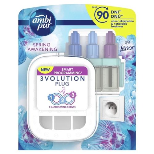 Neustále eliminuje pachy a střídá 3 vzájemně se doplňující vůně pro výraznou svěžest Vydrží až 90 dnů (při používání 12 hodin denně s nastavením nejnižší úrovně odpařování) Chytré programování: Digitálně řízené střídání vůní se svěžestí, která naplní celý váš pokoj Vůně inspirovaná jarní přirozenou svěžestí Lenoru Jedinečná technologie OdourClear od Ambi Pur pachy nepřekrývá, ale skutečně eliminuje a zanechává svěží vůni 3Volution střídá vzájemněse doplňující vůně každých 45 minut pro svěžest, kterou budete vnímat Elektrické osvěžovače vzduchu Ambi Pur pro domácnosti jsou k dostání v celé řadě vysoce kvalitních vůní