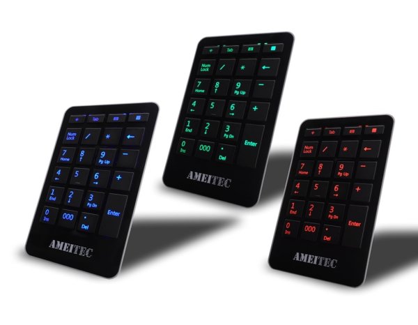 Firma Ameitec představila designově povedený keypad, který svým tvarem připomíná iPhone 4. Lehký a snadno přenositelný keypad uvítají majitelé notebooku nebo netbooku bez numerické klavesnice. I v nepříznivých světelných podmínkách se Vám neztratí, má velice příjemně barevně podsvícená tlačítka. Kabel je svinovací, aby se Vám nikde neválel a nebo nezamotal. Najdete na něm kromě standartních tlačítek i další, jako například "kalkulačka", "email", "tabulator", "osvětlení", "000".
