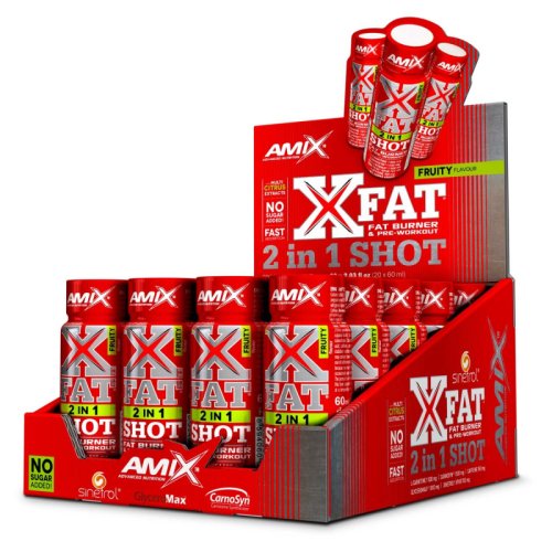 ! Obsahuje kofein, není vhodné pro děti a těhotné ženy. Denní dávka (1 ampule/60 ml) obsahuje 150 mg kofeinu. Produkt není vhodný pro osoby trpící přecitlivělostí na kofein. XFat 2in1 SHOT je vynikající spalovač tuku a předtréninkový doplněk stravy s obsahem glycerolu GlyceroMax, SINETROL XPUR, L-Karnitinu, CarnoSyn - beta alaninu a kofeinu. Doporučené dávkování:
