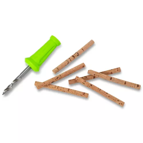 Tato sada obsahuje vrták o průměru 4 mm a korkové válečky pro snadné vyvážení menších nástrah. Jednoduše vyvrtáš otvor do boilies, tygřího ořechu nebo pelety a vložíš korek, který dodá nástraze potřebný vztlak. Perfektní volba pro jemnější prezentaci nástrah.