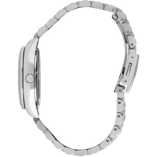 Dámské náramkové hodinky Napájení z baterie Průměr pouzdra 30,0 mm Pouzdro ve tvaru kruhu Kovové pouzdro Stříbrná barva pouzdra Kovový tah Stříbrná barva tahu Ručičkový ciferník Černá barva ciferníku Ciferník s dvanácti indexy Materiál skla - minerální sklo Odolné proti vodě při běžném nošení Datum