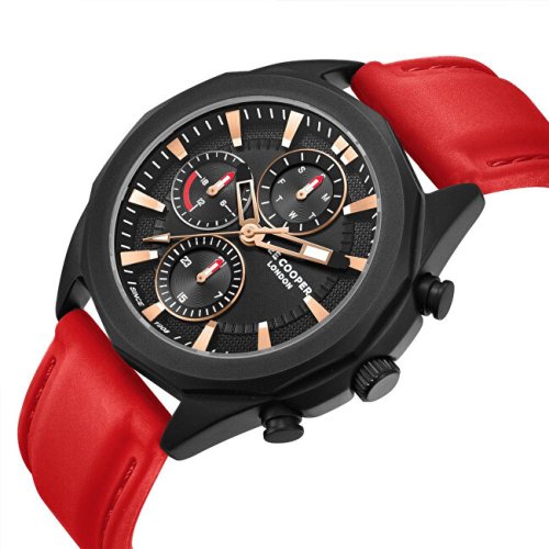 Pánské náramkové hodinky Napájení z baterie Průměr pouzdra 44,0 mm Pouzdro ve tvaru kruhu Kovové pouzdro ČERNÁ barva pouzdra Červená barva tahu Ručičkový ciferník Černá barva ciferníku Ciferník s dvanácti indexy Materiál skla - minerální sklo Odolné proti vodě při běžném nošení