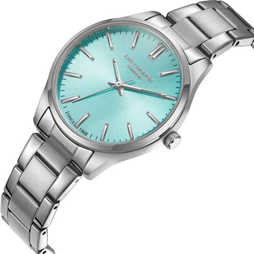 Dámské náramkové hodinky Napájení z baterie Průměr pouzdra 34,0 mm Pouzdro ve tvaru kruhu Kovové pouzdro Stříbrná barva pouzdra Kovový tah Stříbrná barva tahu Ručičkový ciferník SVETLO MODRÁ barva ciferníku Ciferník s dvanácti indexy Materiál skla - minerální sklo Odolné proti vodě při běžném nošení