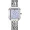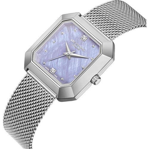 Dámské náramkové hodinky Napájení z baterie Průměr pouzdra 27,0 mm Pouzdro ve tvaru čtverce Kovové pouzdro Stříbrná barva pouzdra Kovový tah Stříbrná barva tahu Ručičkový ciferník Fialová barva ciferníku Ciferník s dvanácti indexy Materiál skla - minerální sklo Odolné proti vodě při běžném nošení