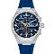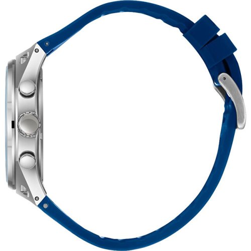Pánské náramkové hodinky Napájení z baterie Průměr pouzdra 45,0 mm Pouzdro ve tvaru kruhu Kovové pouzdro Stříbrná barva pouzdra Kožený tah TMAVO MODRÁ barva tahu Ručičkový ciferník TMAVO MODRÁ barva ciferníku Ciferník s dvanácti indexy Materiál skla - minerální sklo Odolné proti vodě při běžném nošení