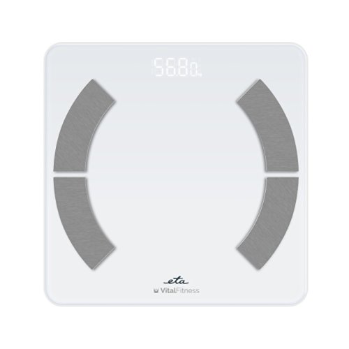 Analytická osobní váha s nosností do 180 kg a rozlišením 100 g umožňuje měřit hmotnost v jednotkách kg, lb i st. V kombinaci s aplikací ETA Smart poskytuje detailní přehled o tělesných hodnotách a vývoji formy v čase. Zaznamenává a analyzuje data jako metabolický věk, viscerální tuk, tělesný tuk, množství vody v těle, svalovinu, hmotnost kostí, doporučený minimální kalorický příjem i BMI. Nabízí možnost nastavení a sledování individuálního cíle a uložení dat až pro 10 uživatelů. Váha je kompatibilní s Androidem 7.0 a vyšším, iOS 9.0 a vyšším. Napájena je třemi AAA bateriemi, které jsou součástí balení. Vyhotovena je v bílé barvě.