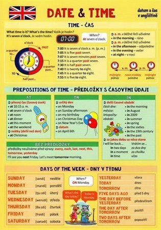 Datum a čas v angličtině, v jedné tabulce, která se vejde do každého sešitu, či notýsku ! Tento malý pomocník se hodí každému angličtináři, bez ohledu na to, jestli je to školák nebo ne!