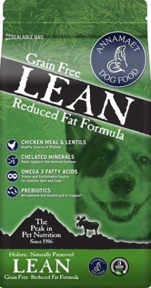 Krmivo Annamaet Grain Free LEAN s nižším obsahem tuků (8 %) je ideální pro snižování a udržování tělesné hmotnosti a vhodné pro psy s pankreatitidou. Vysoký obsah proteinů (30 %) zajišťuje krmivu sytost a pomáhá udržovat svalovou hmotu bez tvorby tukových zásob. Hlavními zdroji bílkovin v této receptuře jsou kuře, kachna a sleď. Veškerá drůbež pochází z ekologických chovů nepoužívajících antibiotika ani hormony. Krmivo je vhodné pro psy ve všech životních stadiích – štěňata, březí i kojící feny a dospělé psy. Receptura bez obilovin. Hlavní přednosti krmiva: