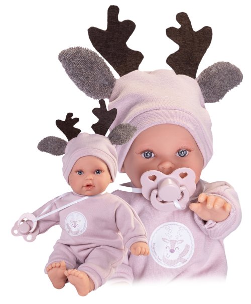 Plačící a mluvící, ručně vyrobená realistická španělská panenka, reagující na magnetický dudlík. Po vytažení dudlíku z úst vydává reálný zvuk plačícího dítěte, který lze utišit opět dudlíkem a říká „mama“, „papa“. Panenka má měkké látkové tělo, hlava a končetiny jsou vyrobené z kvalitního měkčeného vinylu. Oblečení některých panenek bylo vyrobeno z organické bavlny, která zaručuje výrobu z ručně sbírané, ekologicky bez chemického ošetření pěstované bavlny. Firma Antonio Juan klade velký důraz na ekologii a proto jako první využívá v tomto odvětví zmíněnou bavlnu. Velikost 27 cm. Baleno v dárkové krabici. Doporučený věk od 2 let. Součástí balení je 3 x knoflíková baterie LR44 s návodem na její výměnu. Baterie jsou spotřební zboží a proto jejich vybití není důvodem k reklamaci panenky.