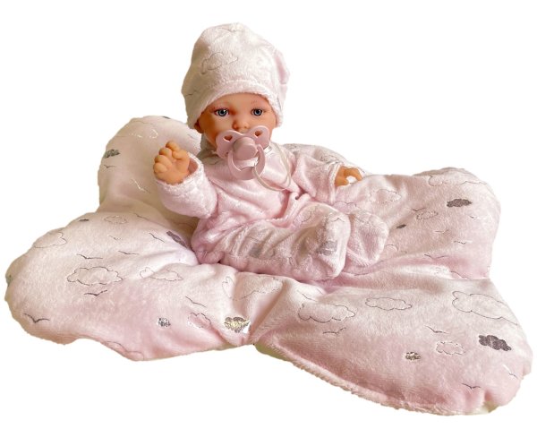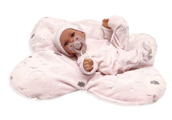 Ručně vyrobená realistická španělská panenka - miminko, se speciální pohybovou funkcí. Díky vnitřní opoře kostry těla, může dělat neobvyklé pohyby končetin, jako překřížit nožičky vleže, dát k sobě dlaně nebo zaujmat různé miminkovské polohy. Miminko má měkké látkové tělo, hlava a končetiny jsou vyrobené z kvalitního měkčeného vinylu. Oblečení některých panenek bylo vyrobeno z organické bavlny, která zaručuje výrobu z ručně sbírané, ekologicky bez chemického ošetření pěstované bavlny. Firma Antonio Juan klade velký důraz na ekologii a proto jako první využívá v tomto odvětví zmíněnou bavlnu. Velikost 27 cm. Baleno v dárkové krabici. Doporučený věk od 3 let.