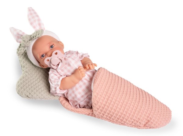 Ručně vyrobená realistická španělská panenka s měkkým látkovým tělem. Hlava a končetiny jsou vyrobené z kvalitního měkčeného vinylu. Oblečení některých panenek bylo vyrobeno z organické bavlny, která zaručuje výrobu z ručně sbírané, ekologicky bez chemického ošetření pěstované bavlny. Firma Antonio Juan klade velký důraz na ekologii a proto jako první využívá v tomto odvětví zmíněnou bavlnu. Velikost 27 cm. Baleno v dárkové krabici. Doporučený věk od 2 let.