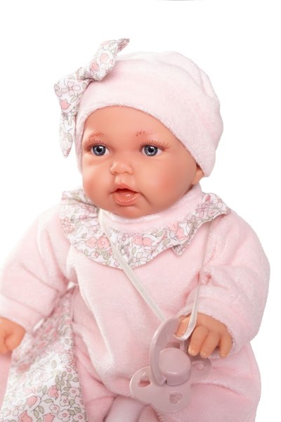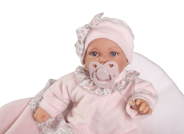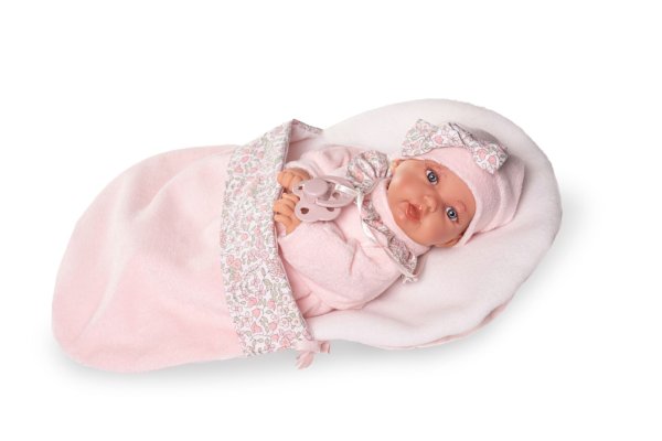 Ručně vyrobená realistická španělská panenka s měkkým látkovým tělem. Hlava a končetiny jsou vyrobené z kvalitního měkčeného vinylu. Oblečení některých panenek bylo vyrobeno z organické bavlny, která zaručuje výrobu z ručně sbírané, ekologicky bez chemického ošetření pěstované bavlny. Firma Antonio Juan klade velký důraz na ekologii a proto jako první využívá v tomto odvětví zmíněnou bavlnu. Velikost 27 cm. Baleno v dárkové krabici. Doporučený věk od 2 let.