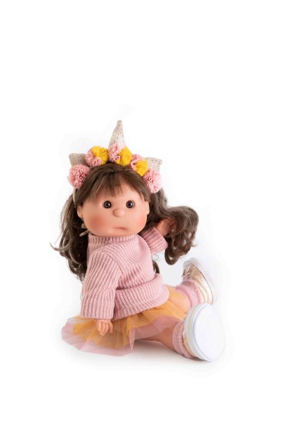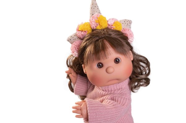 Ručně vyrobená španělská imaginární panenka s celovinylovým tělem a vlásky po celé hlavě. Oblečení některých panenek bylo vyrobeno z organické bavlny, která zaručuje výrobu z ručně sbírané, ekologicky bez chemického ošetření pěstované bavlny. Firma Antonio Juan klade velký důraz na ekologii a proto jako první využívá v tomto odvětví zmíněnou bavlnu. Velikost 38 cm. Baleno v dárkové krabici. Doporučený věk od 3 let.