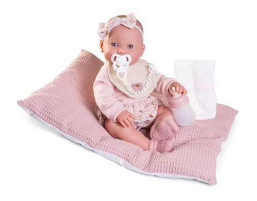 Mrkací a čůrající, ručně vyrobená realistická španělská panenka - miminko new born s celovinylovým tělem a realistickým vyobrazením různých miminkovských faldíků a detailů včetně pohlaví. Panenka je vyrobená ze speciálního měkčeného vinylu, velmi příjemného na dotek. Oblečení některých panenek bylo vyrobeno z organické bavlny, která zaručuje výrobu z ručně sbírané, ekologicky bez chemického ošetření pěstované bavlny. Firma Antonio Juan klade velký důraz na ekologii a proto jako první využívá v tomto odvětví zmíněnou bavlnu. Velikost 42 cm. Součástí balení je i lahvička plnitelná vodou a dvě jednorázové plínky. Baleno v dárkové krabici. Doporučený věk od 3 let.