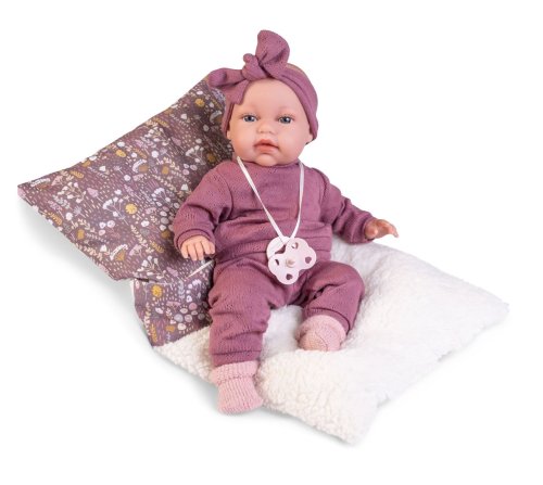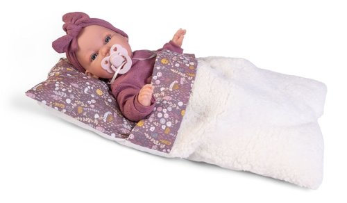 Mluvící, ručně vyrobená realistická španělská panenka - miminko. Po zatlačení na bříško začne panenka vydávat zvuky podobné dětskému žvatlání. Panenka má měkké látkové tělo, hlava a končetiny jsou vyrobené z kvalitního měkčeného vinylu. Oblečení některých panenek bylo vyrobeno z organické bavlny, která zaručuje výrobu z ručně sbírané, ekologicky bez chemického ošetření pěstované bavlny. Firma Antonio Juan klade velký důraz na ekologii a proto jako první využívá v tomto odvětví zmíněnou bavlnu. Velikost 34 cm. Baleno v dárkové krabici. Doporučený věk od 3 let. Součástí balení je 3 x knoflíková baterie LR44 s návodem na její výměnu. Baterie jsou spotřební zboží a proto jejich vybití není důvodem k reklamaci panenky.