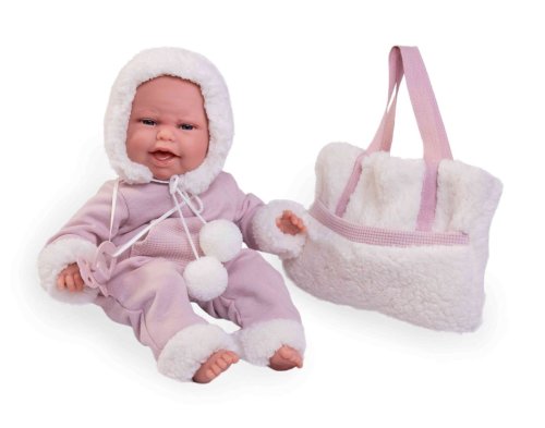 Ručně vyrobená realistická španělská panenka - miminko, se speciální pohybovou funkcí. Díky vnitřní opoře kostry těla, může dělat neobvyklé pohyby končetin, jako překřížit nožičky vleže, dát k sobě dlaně nebo zaujmat různé miminkovské polohy. Miminko má měkké látkové tělo, hlava a končetiny jsou vyrobené z kvalitního měkčeného vinylu. Oblečení některých panenek bylo vyrobeno z organické bavlny, která zaručuje výrobu z ručně sbírané, ekologicky bez chemického ošetření pěstované bavlny. Firma Antonio Juan klade velký důraz na ekologii a proto jako první využívá v tomto odvětví zmíněnou bavlnu. Velikost 34 cm. Baleno v dárkové krabici. Doporučený věk od 3 let.