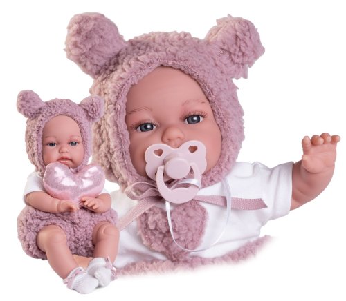 Ručně vyrobená realistická španělská panenka - miminko, se speciální pohybovou funkcí. Díky vnitřní opoře kostry těla, může dělat neobvyklé pohyby končetin, jako překřížit nožičky vleže, dát k sobě dlaně nebo zaujmat různé miminkovské polohy. Miminko má měkké látkové tělo, hlava a končetiny jsou vyrobené z kvalitního měkčeného vinylu. Oblečení některých panenek bylo vyrobeno z organické bavlny, která zaručuje výrobu z ručně sbírané, ekologicky bez chemického ošetření pěstované bavlny. Firma Antonio Juan klade velký důraz na ekologii a proto jako první využívá v tomto odvětví zmíněnou bavlnu. Velikost 34 cm. Baleno v dárkové krabici. Doporučený věk od 3 let.