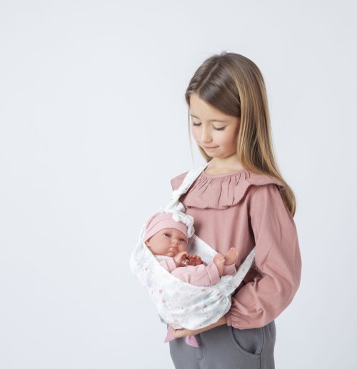 Ručně vyrobená realistická španělská panenka - miminko Můj malý Reborn s některými ručně dokreslovanými detaily jako jsou: nehtíky, obočí, místa záhybů atd. Miminko není klasickým Rebornem, ale má některé jeho vlastnosti. Nesmí se dostat do kontaktu s vodou vzhlem k ruční malbě a použití akrylových barev. Má certifikát o původu - rodný list a váží 685 gr. Panenka má měkké látkové tělo, hlava a končetiny jsou vyrobené z kvalitního měkčeného vinylu. Oblečení některých panenek bylo vyrobeno z organické bavlny, která zaručuje výrobu z ručně sbírané, ekologicky bez chemického ošetření pěstované bavlny. Firma Antonio Juan klade velký důraz na ekologii a proto jako první využívá v tomto odvětví zmíněnou bavlnu. Velikost 33 cm. Baleno v dárkové krabici. Doporučený věk od 3 let.