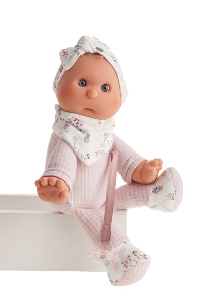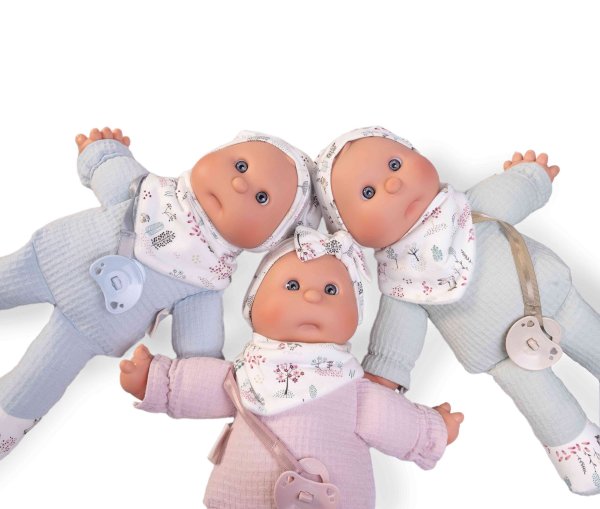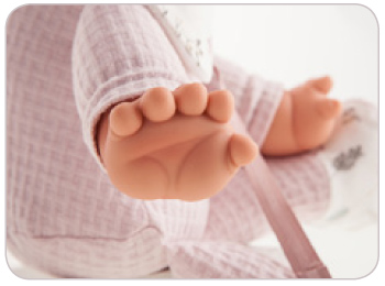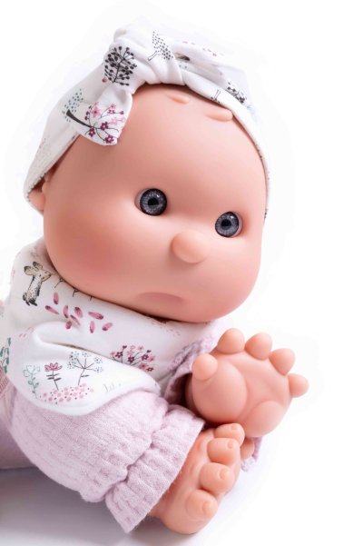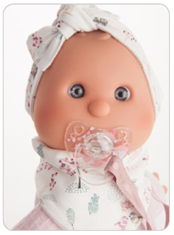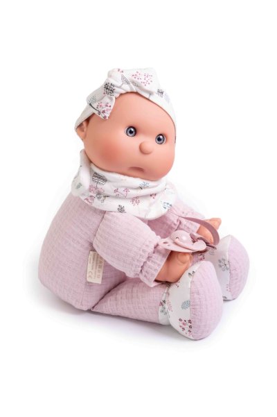 Ručně vyrobená španělská panenka speciálně pro batolata s dudlíkem na magnet. Panenka má měkké látkové tělo, hlava a končetiny jsou vyrobené z kvalitního měkčeného vinylu. Oblečení některých panenek bylo vyrobeno z organické bavlny, která zaručuje výrobu z ručně sbírané, ekologicky bez chemického ošetření pěstované bavlny. Firma Antonio Juan klade velký důraz na ekologii a proto jako první využívá v tomto odvětví zmíněnou bavlnu. Velikost 36 cm. Baleno v dárkové krabici. Doporučený věk od 18 měsíců.
