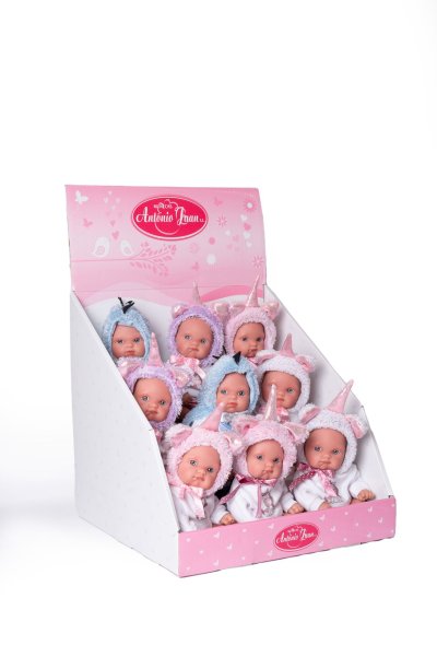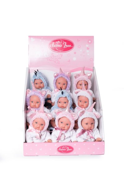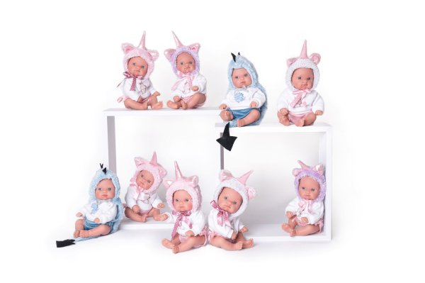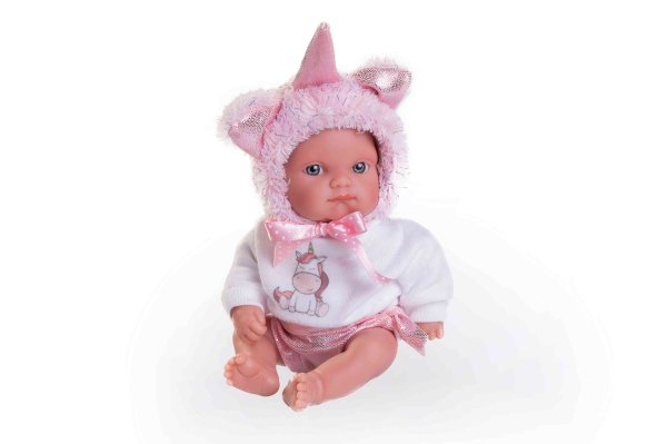 Ručně vyrobená realistická španělská panenka - miminko new born s celovinylovým tělem a realistickým vyobrazením různých miminkovských faldíků a detailů včetně pohlaví. Panenka je vyrobená ze speciálního měkčeného vinylu, velmi příjemného na dotek. Miminko lze koupat. Oblečení některých panenek bylo vyrobeno z organické bavlny, která zaručuje výrobu z ručně sbírané, ekologicky bez chemického ošetření pěstované bavlny. Firma Antonio Juan klade velký důraz na ekologii a proto jako první využívá v tomto odvětví zmíněnou bavlnu. Velikost 21 cm. Baleno v ochranném igelitovém obalu. Doporučený věk od 3 let.