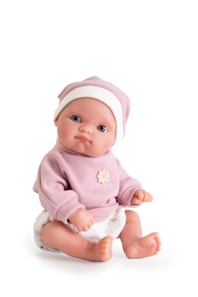 Ručně vyrobená realistická španělská panenka - miminko new born s celovinylovým tělem a realistickým vyobrazením různých miminkovských faldíků a detailů včetně pohlaví. Panenka je vyrobená ze speciálního měkčeného vinylu, velmi příjemného na dotek. Miminko lze koupat. Oblečení některých panenek bylo vyrobeno z organické bavlny, která zaručuje výrobu z ručně sbírané, ekologicky bez chemického ošetření pěstované bavlny. Firma Antonio Juan klade velký důraz na ekologii a proto jako první využívá v tomto odvětví zmíněnou bavlnu. Velikost 21 cm. Součástí balení je i taška na nošení. Baleno v dárkové krabici. Doporučený věk od 3 let.