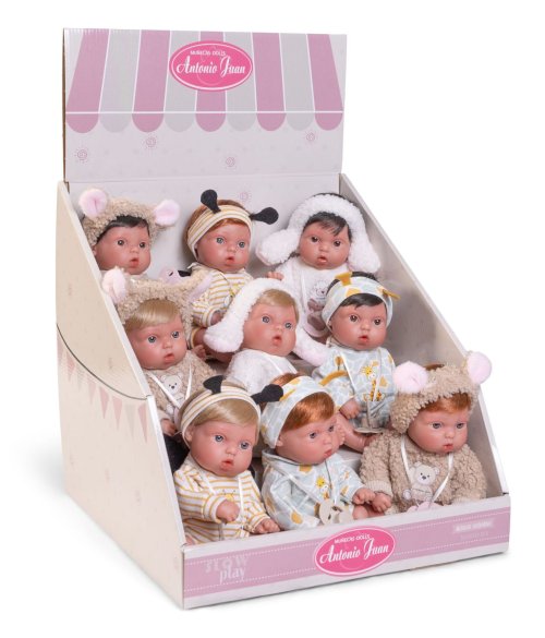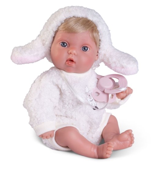 Ručně vyrobená realistická španělská panenka - miminko new born s celovinylovým tělem a realistickým vyobrazením různých miminkovských faldíků a detailů včetně pohlaví. Panenka je vyrobená ze speciálního měkčeného vinylu, velmi příjemného na dotek. Oblečení některých panenek bylo vyrobeno z organické bavlny, která zaručuje výrobu z ručně sbírané, ekologicky bez chemického ošetření pěstované bavlny. Firma Antonio Juan klade velký důraz na ekologii a proto jako první využívá v tomto odvětví zmíněnou bavlnu. Velikost 21 cm. Doporučený věk od 2 let.