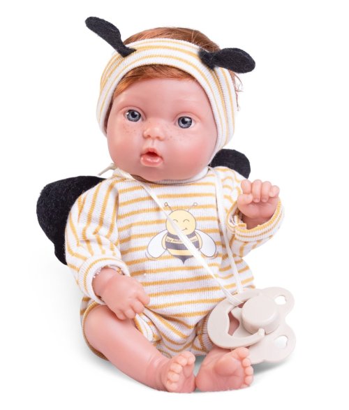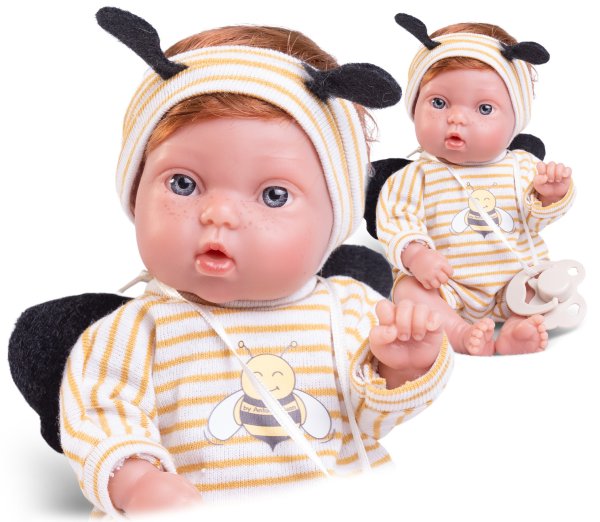 Ručně vyrobená realistická španělská panenka - miminko new born s celovinylovým tělem a realistickým vyobrazením různých miminkovských faldíků a detailů včetně pohlaví. Panenka je vyrobená ze speciálního měkčeného vinylu, velmi příjemného na dotek. Oblečení některých panenek bylo vyrobeno z organické bavlny, která zaručuje výrobu z ručně sbírané, ekologicky bez chemického ošetření pěstované bavlny. Firma Antonio Juan klade velký důraz na ekologii a proto jako první využívá v tomto odvětví zmíněnou bavlnu. Velikost 21 cm. Doporučený věk od 2 let.