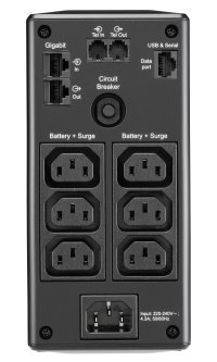 Záložní zdroj o výkonu 390 W s ochranou proti přepětí a line-interaktivní topologií. Disponuje šesti IEC 320 C13 konektory. Pro snadné ovládání je vybaven LCD displejem. Akustická varování pak upozorňují na změny stavu jednotky UPS či parametrů napájení. Samozřejmostí je ochrana datové linky nebo autotest baterie, který včas upozorní, kdy je třeba její výměny. Automatická regulace (AVR) pak eliminuje výkyvy napětí způsobující zhoršení audio a video signálu a namáhání napájecích komponent. Ke správě jednotky slouží USB port.