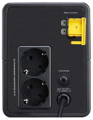 Vežová UPS 900 VA má celkom 2 výstupy, z ktorých všetky poskytujú záložnú batériu a ochranu proti prepätiu. Má nárazovú energiu 273 joulov. Je vybavená automatickou reguláciou napätia, ktorá koriguje poklesy a rázy napätia na správnu úroveň. Táto UPS má 2-ročnú záruku a certifikáciu produktu CE. Je kompatibilný s vyhradenou užívateľsky vymeniteľnou batériou a náhradná batéria APC pomáha obnoviť výkon UPS na pôvodné špecifikácie.